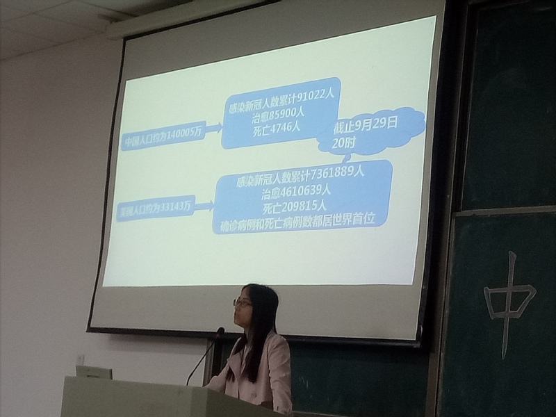岳芯羽老师在讲《新冠战“疫”中的讲诉故事》