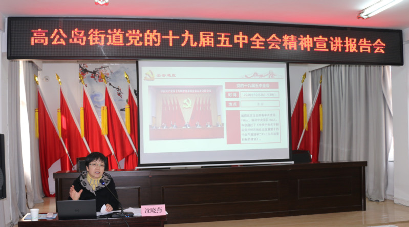 为深入学习贯彻党的十九届五中全会精神,推动党的创新理论走近群众,12月7日下午,市委宣讲团成员、yl7703永利经理沈晓燕走进高公岛街道,专题宣讲《学习贯彻党的十九届五中全会精神》,高公岛街道机关、村(社区)党员干部聆听了宣讲报告。