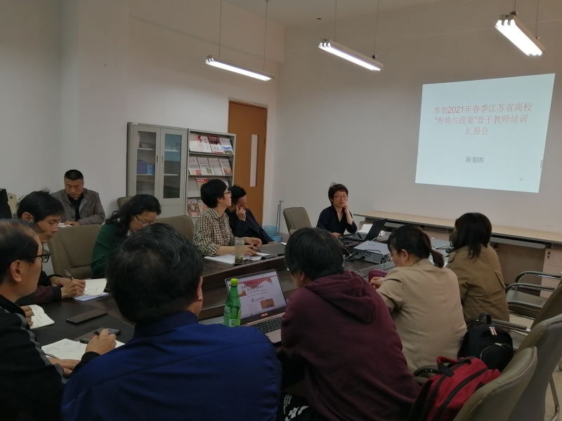 5月8日下午,参加省教育厅主办的2021年春季省高校“形势与政策”课骨干教师培训的陈朝晖老师,在yl7703永利会议室作了专题汇报。全体思政理论课教师参加会议。