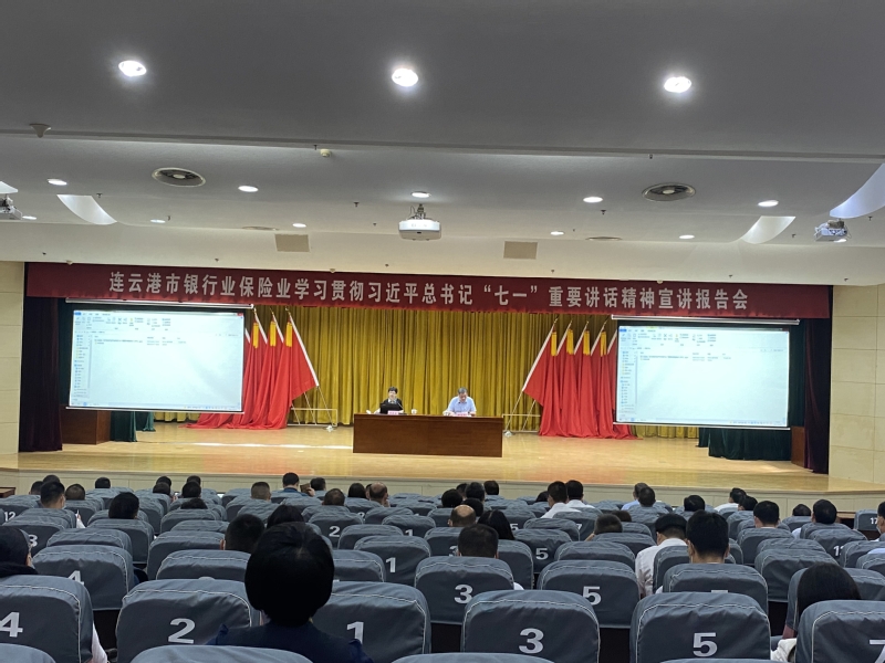 报告就“七一”重要讲话精神实质、思想精髓以及讲话在一系列重大问题上的新论断、新概括等方面做了生动精彩的专题授课。报告会有效提高了连云港银保监分局党史学习教育覆盖面,推动了行业将重要讲话精神与具体工作的相互融合、相互促进,进一步让党的创新理论走向基层、走进群众,凝聚社会力量,助力地方经济社会高质量发展。
