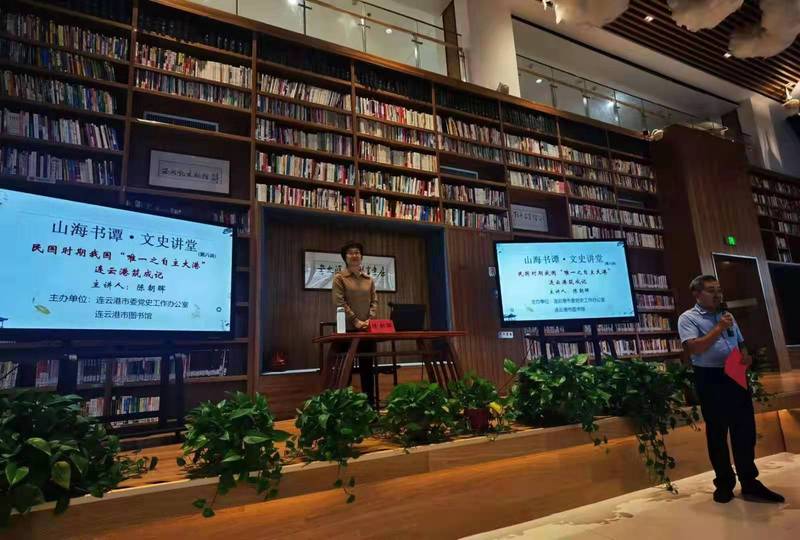为庆祝伟大祖国72周年华诞,连云港市委党史工作办公室与连云港市图书馆共同举办“山海书谭·文史讲堂”国庆系列讲座,10月7日下午在连云港市图书馆五楼共享书房,yl7703永利陈朝晖老师应邀作专题讲座。活动由市图书馆馆长梁继东主持,全市百余名地方文史专家、学者及爱好者聆听了讲座。