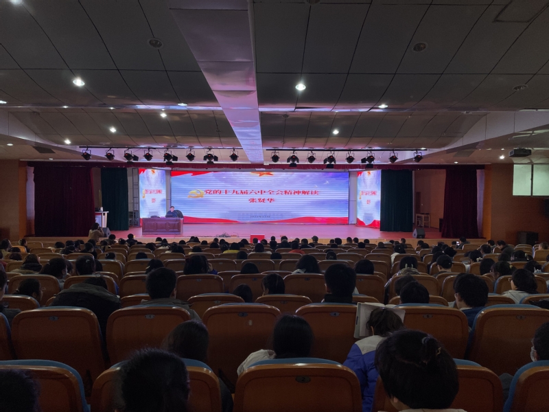 专题宣讲报告既有深入浅出的理论阐述,又有旁征博引的实例分析,更有来自广大基层实践层面的多维思考,观点深刻,内容丰富。党的十九届六中全会是在中国共产党成立100周年这一重要历史时刻召开的重要会议,深入学习宣传贯彻党的十九届六中全会精神,是当前和今后一个时期的重要政治任务,我们将把全会精神作为奋斗新征程的行为导向,充分发挥专业优势,努力服务地方社会发展,坚持立德树人,努力为党育人、为国育才。