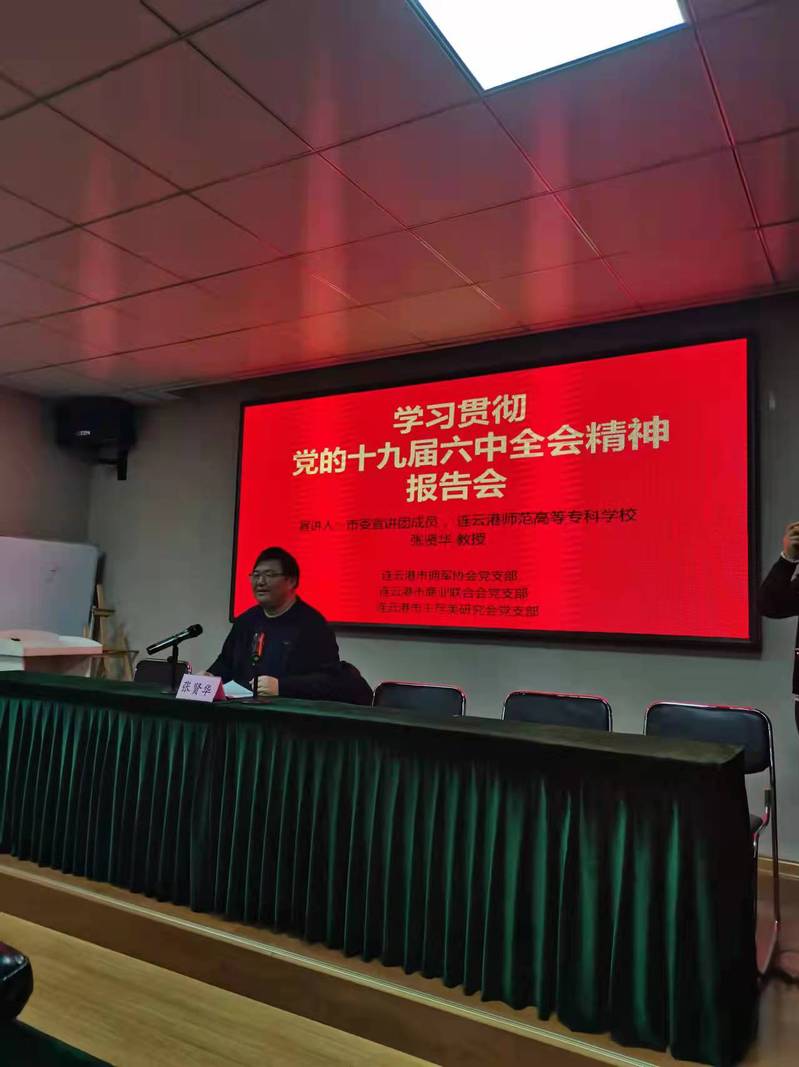 为推进党的十九届六中全会精神走进社会基层,1月5日下午,市委宣讲团成员、yl7703永利张贤华老师到市社科类社会组织宣讲党的十九届六中全会精神,宣讲报告会在市商业联合会大楼六楼召开。市委“七一”宣讲团成员社科联常委历史学会副会长石荣伦、市拥军协会商业联合会会长王永军、执行会长蒋明轩、常务副会长李万成、市哲文学会秘书长卢同根等近百人参加了宣讲报告会。