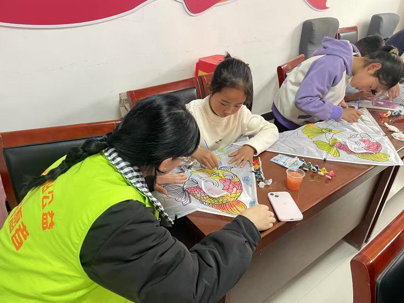 元邦村的活动则充满趣味性和创意性。“风筝猜猜猜”游戏让现场气氛热烈,孩子们通过志愿者的描述猜测不同风筝的样式。随后的创意绘画环节,孩子们大胆发挥想象力,有的将传统纹样与现代元素结合,有的在风筝上描绘超级英雄,展现出传统与创新的完美融合。